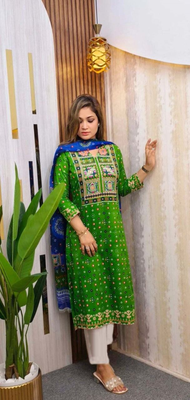 কামিজ লিলেন কাপড়ের স্কিন প্রিন্ট & স্টোন ওয়ার্ক
