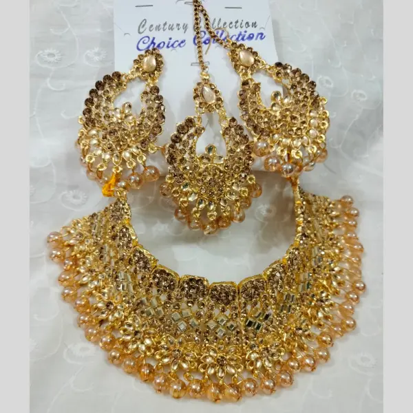 💛 রাজকীয় পার্টি বা ব্রাইডাল লুক – গোল্ডেন নেকলেস সেট 👑